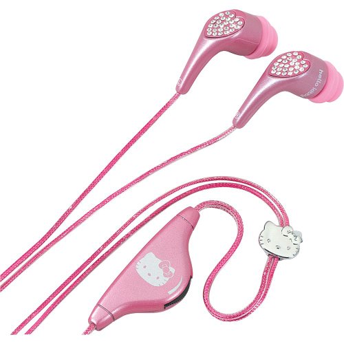 Hello Kitty KT2081A Jeweled Earbud Headphones, In-Line Volume Control Overviews